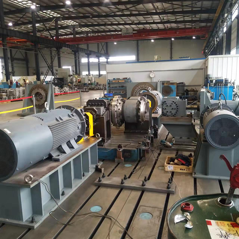 減速機(jī)試驗(yàn)臺(tái)主要由動(dòng)力源、輸入轉(zhuǎn)矩傳感器、被測(cè)減速機(jī)、陪測(cè)減速機(jī)、陪測(cè)端轉(zhuǎn)矩傳感器、模擬加載器、測(cè)試平臺(tái)、工裝、測(cè)控系統(tǒng)、電氣柜等組成。